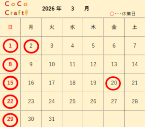 今月は休業日が通常より多くなります。